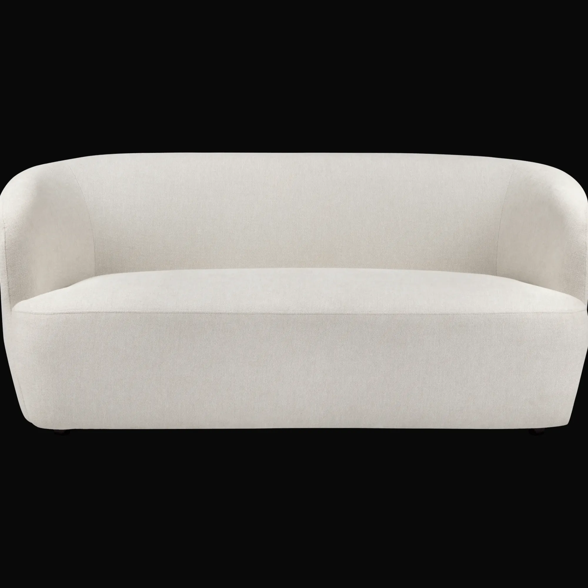 Sleek and snug with a touch of retro charm. This cream loveseat softens any space with its cocooning curves and low profile. Big on style, perfect for small spots.