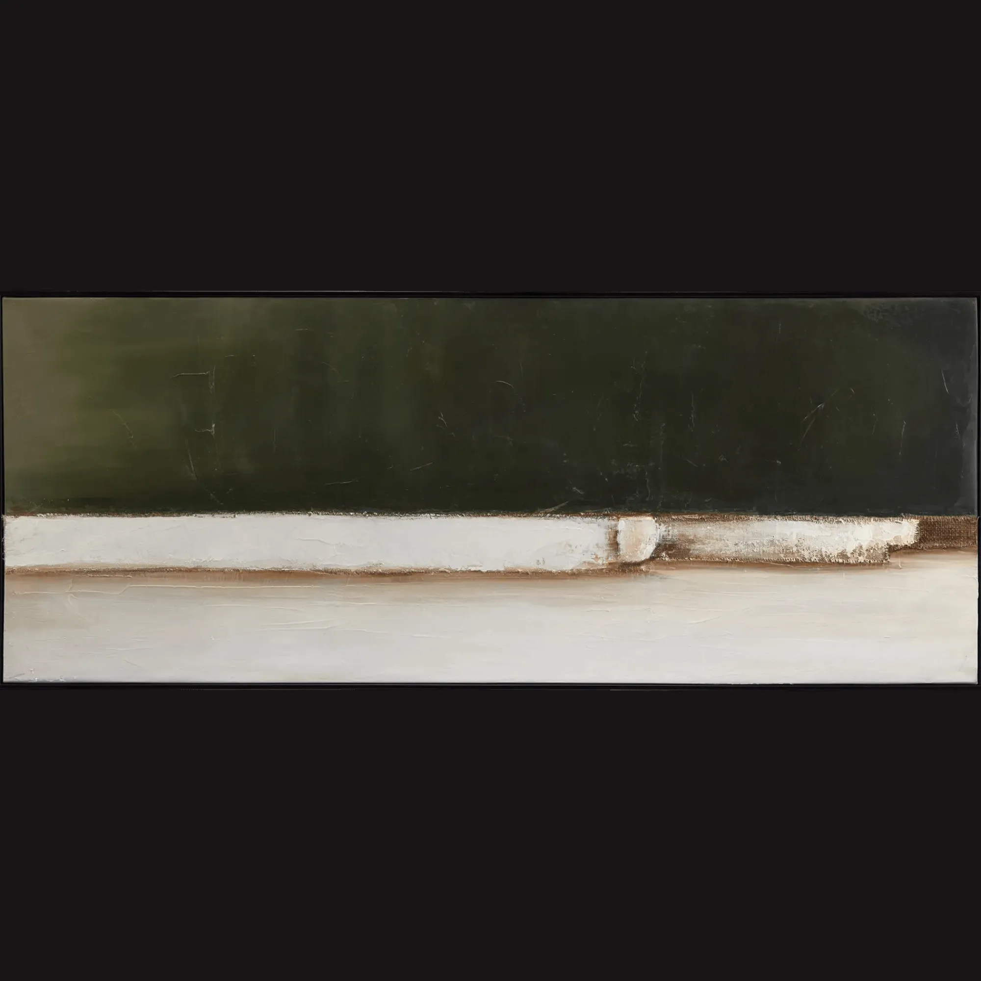 A horizon imagined in tone and tension. Deep green meets weathered white in this abstract piece with a cinematic edge. Stark, moody, and magnetic.