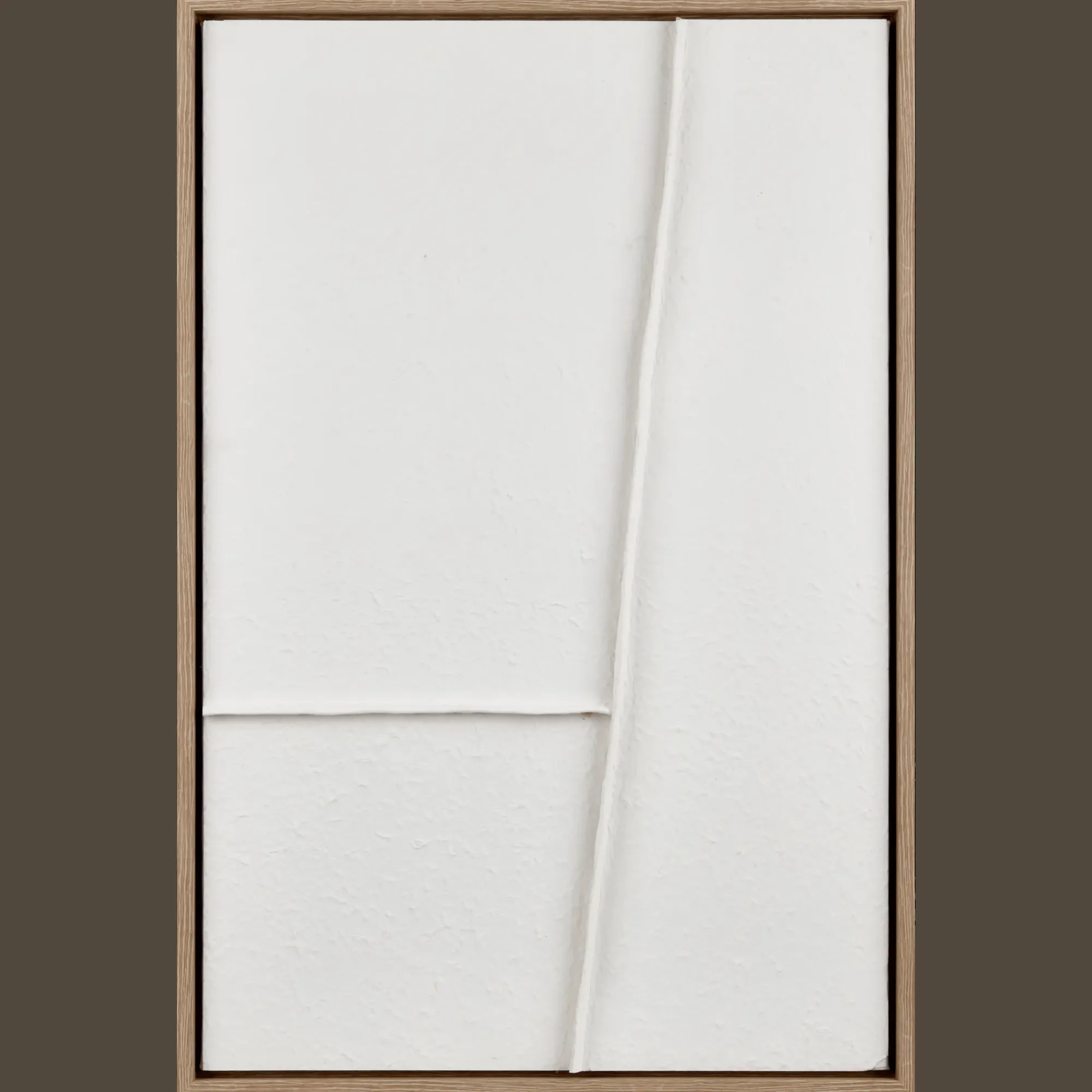 A study in simplicity. This textured white abstract art brings sculptural calm to any space. Framed in natural wood, it’s a quiet statement-elevated, intentional, effortlessly modern.