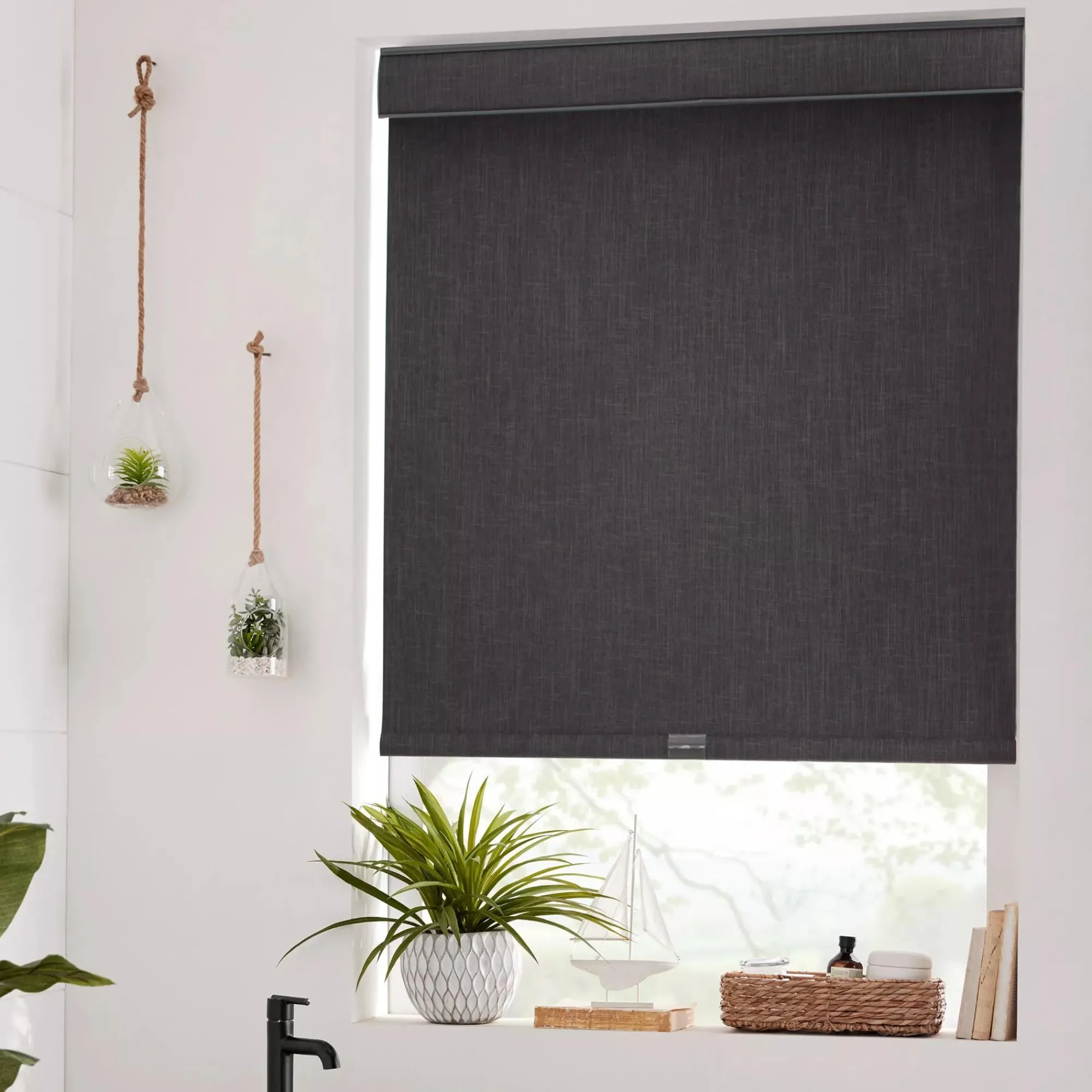 Meet the Gray Chita Fabric Cordless Roller Shade. Durable. Washable. Blocks out light and maximizes privacy in your home. Its sleek profile is perfect for layering with other window coverings and the shade offers an elegant matte finish to accentuate the accents of your space. The easy-to-use cordless design allows for precise height positioning and is a safer choice for homes with children or pets.