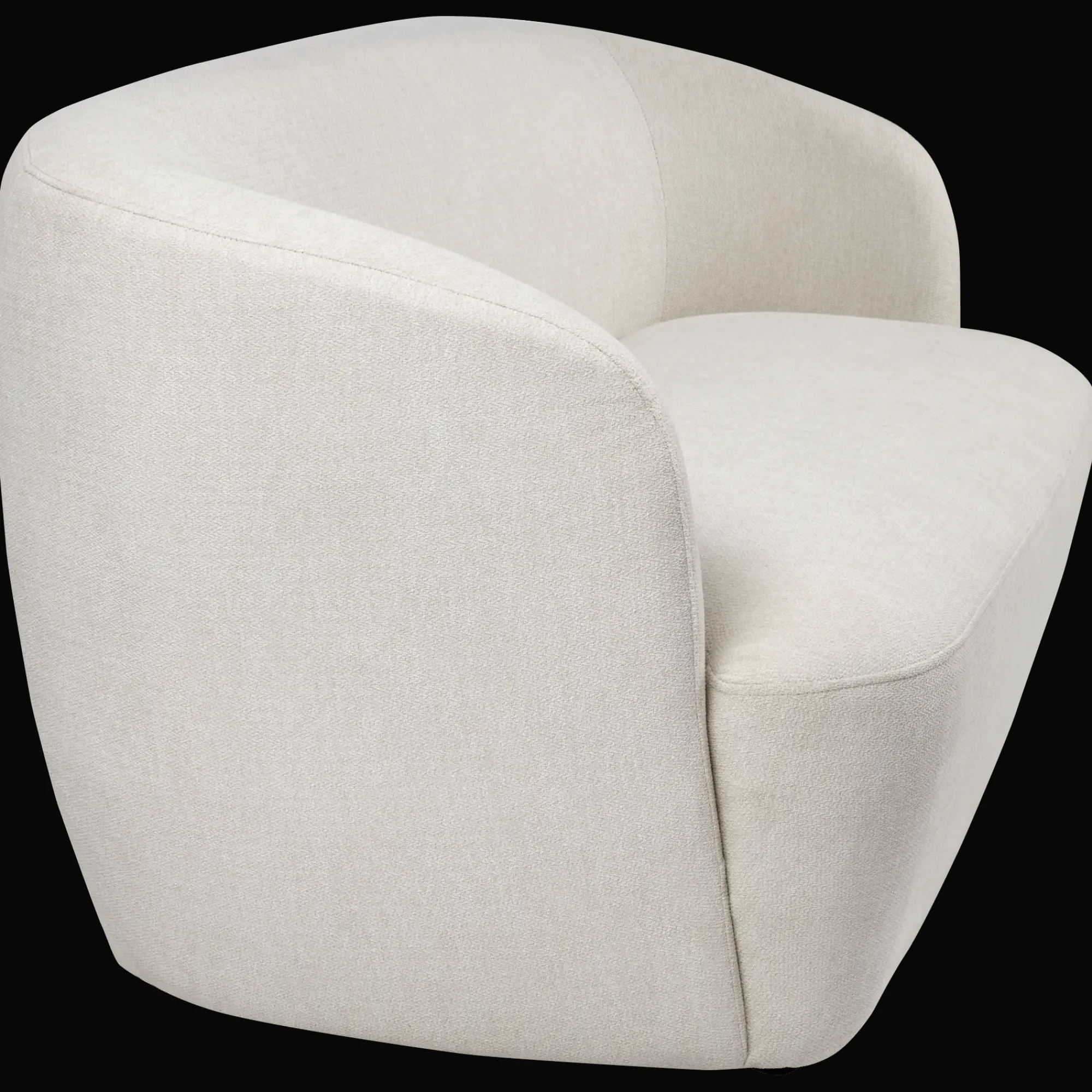 Sleek and snug with a touch of retro charm. This cream loveseat softens any space with its cocooning curves and low profile. Big on style, perfect for small spots.